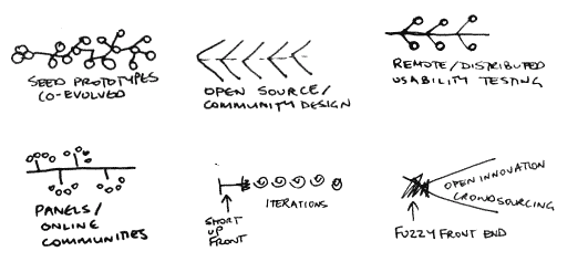 The discipline of design is in a constant state of change. As noted in the previous post one of the most significant trends currently impacting on design practice is the opening up of the design process. Design is moving out from the studio and into the wild, taking place where people live [1]. Users are being re-cast as co-designers, co-creators and co-developers. Trends such as ‘open design’, ‘crowdsourcing’, designing for design in use, post-release iterations and ‘emergent design’ provide new ways for people to participate in the design process, and challenge some of our traditional models of design.